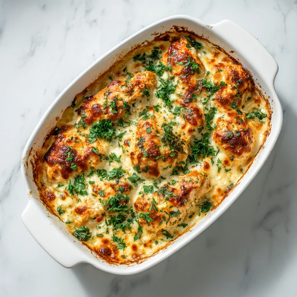 Whether you’re looking for a low-carb dinner idea, a meal prep favorite, or simply a way to elevate your weeknight menu, this recipe checks all the boxes. With its golden crust of cheese and herbs and its luscious garlic cream sauce, Garlic Parmesan Chicken Bake transforms everyday chicken breasts into something special.
