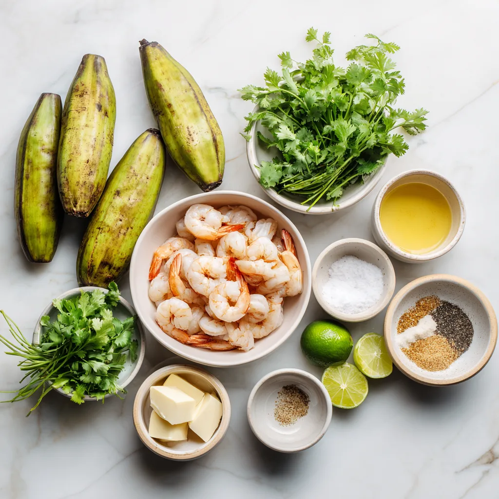 - Bold garlic flavor: Fresh garlic infuses both the plantain base and the shrimp topping.
