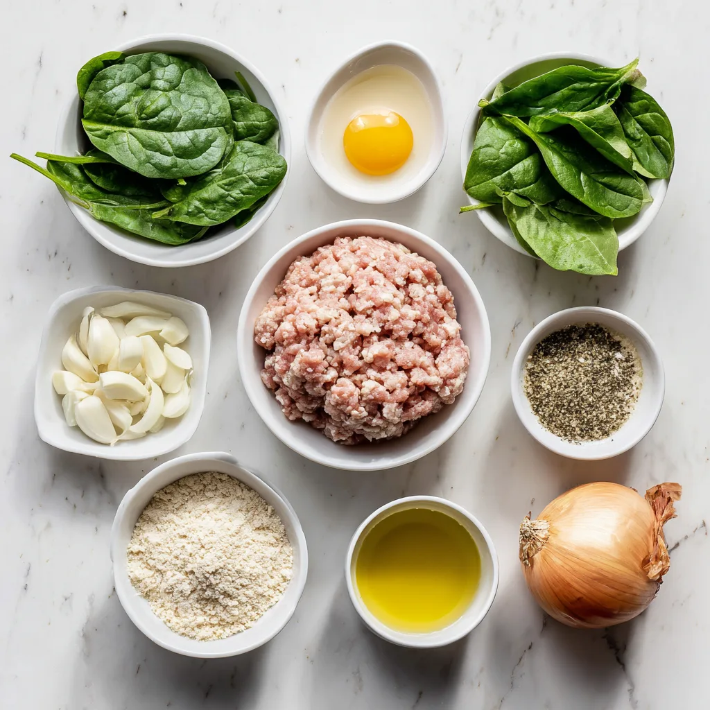 In a large mixing bowl, add ground turkey, chopped spinach, minced garlic, diced onion, breadcrumbs, egg, olive oil, salt, pepper, and any optional seasonings. - Combine Gently: