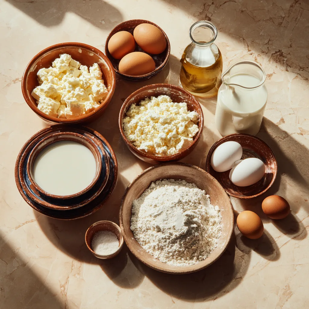 In a blender or mixing bowl, combine cottage cheese, eggs, milk, vanilla extract, and melted butter. Blend until mostly smooth (a few small curds are fine). - Mix the dry ingredients