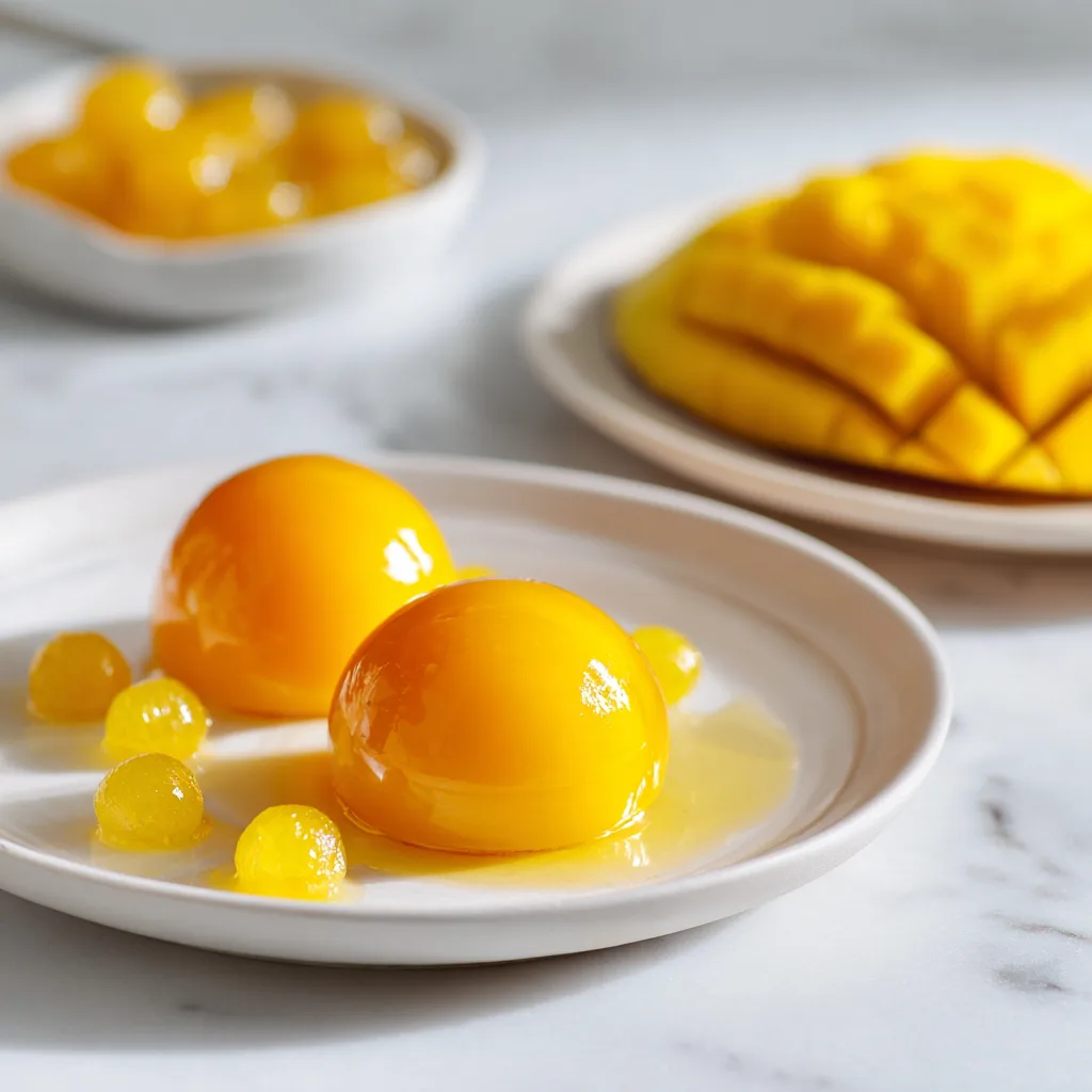 Elegant mango and citrus spheres with a delicate оболка that burst with flavor, perfect for gourmet desserts.