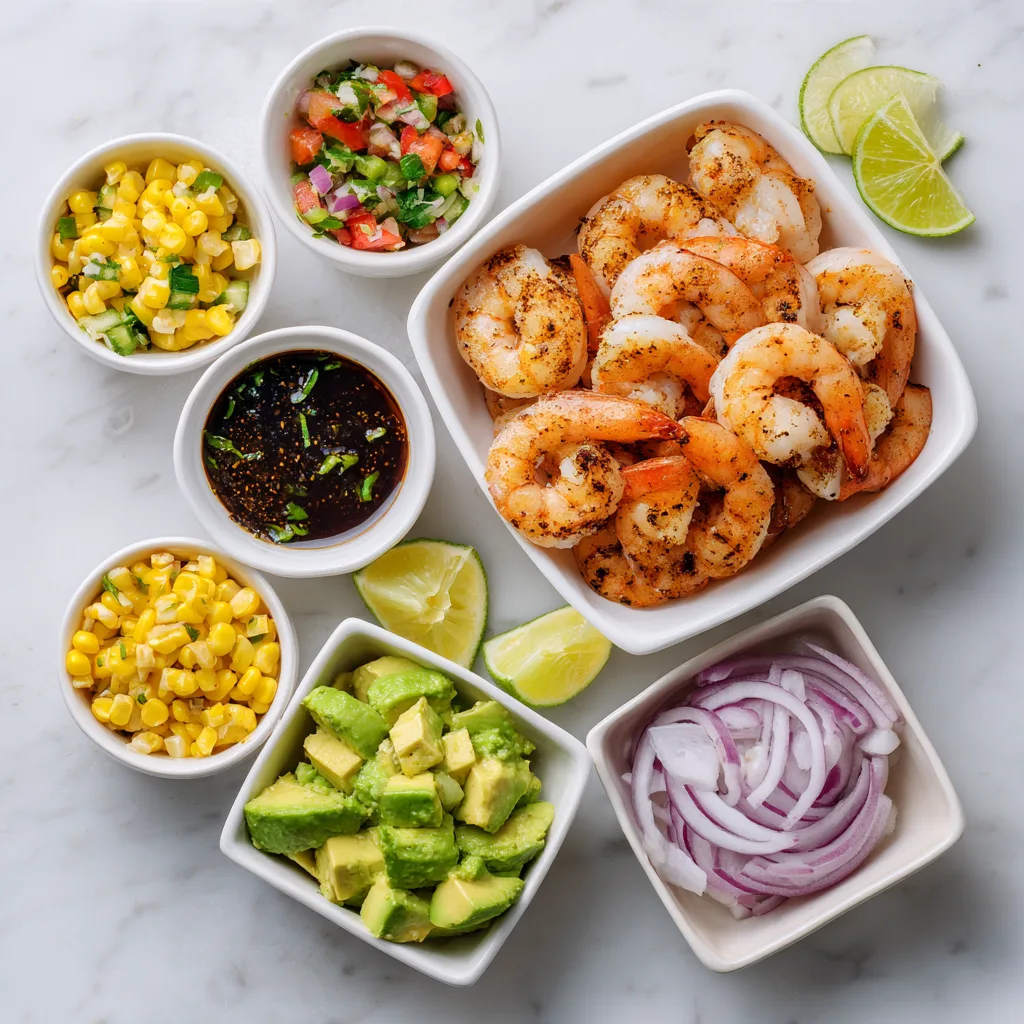 These bowls are exceptionally well-suited for meal preparation, though some components benefit from last-minute assembly. The shrimp can be marinated and grilled up to 2 days ahead, then stored refrigerated and served cold or gently rewarmed. The corn, tomatoes, peppers, and onions for the salsa can be prepared and combined up to a day ahead.