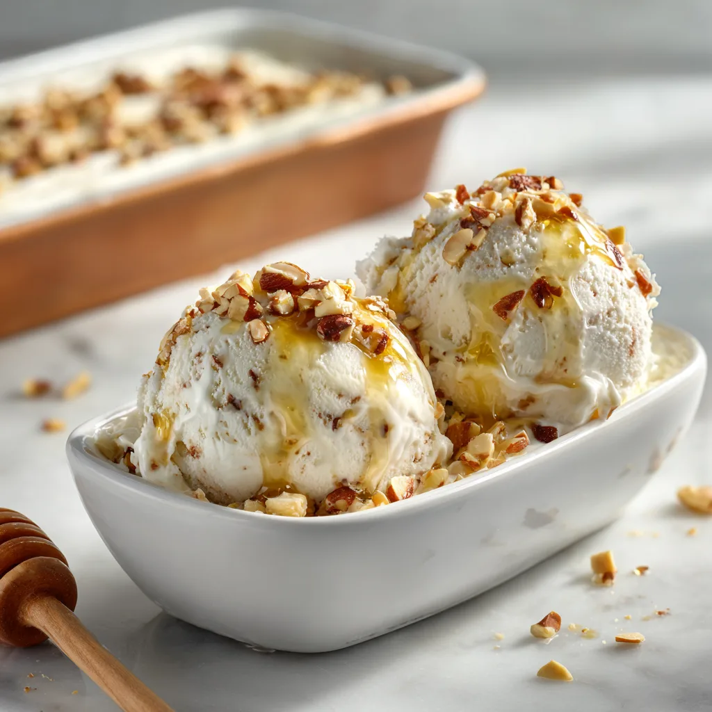 Let the ice cream sit at room temperature for 5–10 minutes before scooping. Garnish with extra nuts and a drizzle of honey if desired.