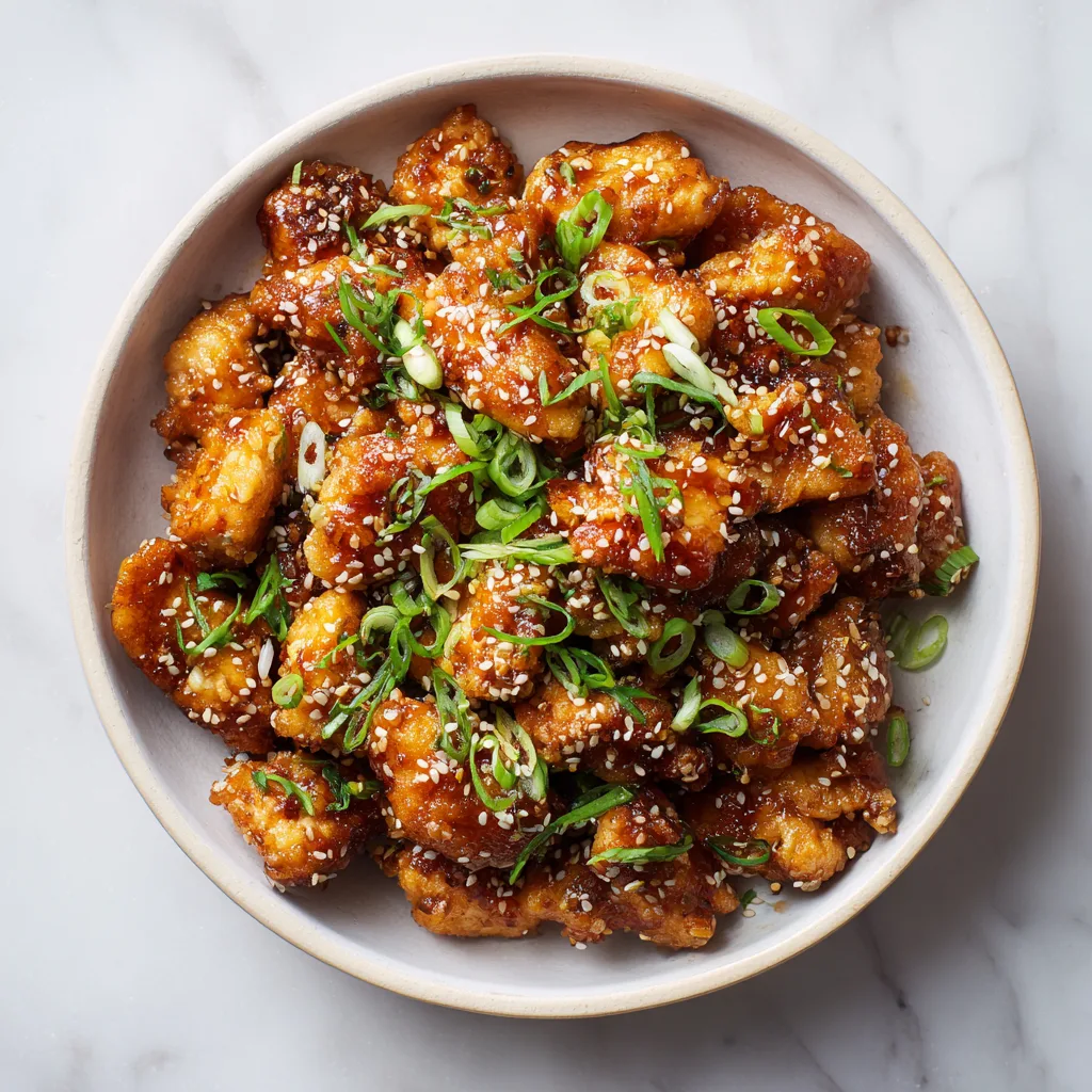 Transfer chicken to a serving plate. Sprinkle generously with toasted sesame seeds and sliced green onions. Serve immediately over steamed rice or alongside stir-fried vegetables.