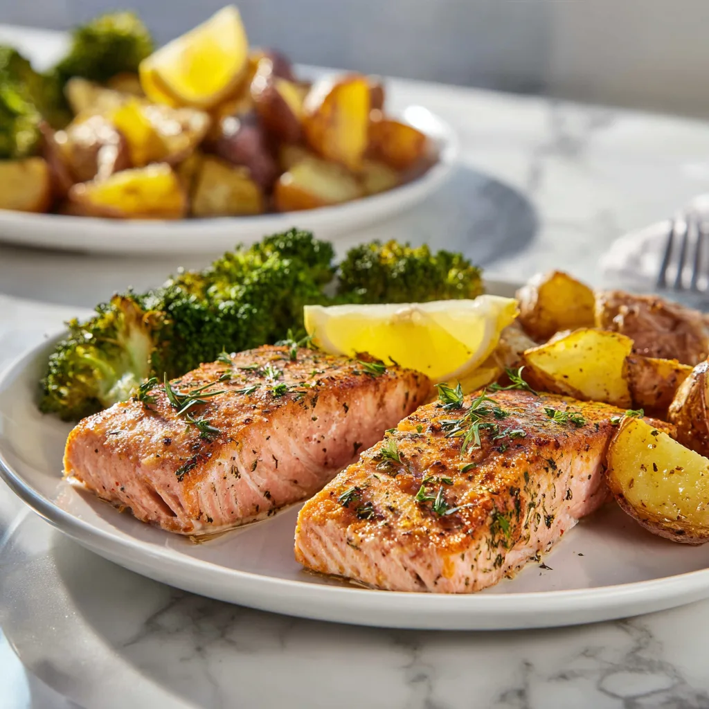 Salmon has long been a favorite protein for home cooks because it’s quick-cooking, nutrient-dense, and endlessly versatile. Pairing it with crispy potatoes and broccoli transforms it into a complete, satisfying meal that doesn’t require multiple complicated sides. Everything works together—bright citrus cuts through the richness of butter, crispy potatoes add texture, and broccoli balances the plate with fresh green goodness.