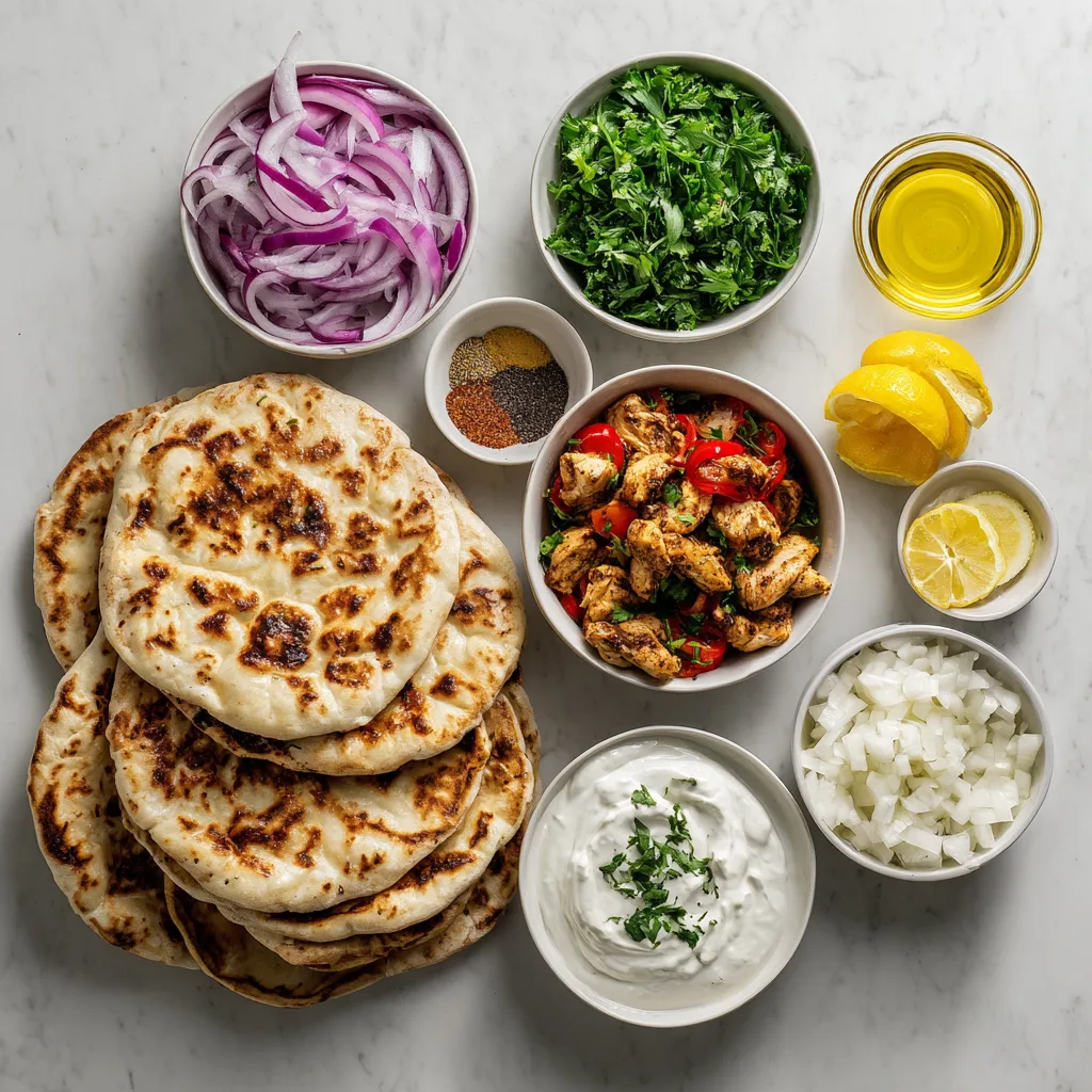 One of the biggest reasons this recipe shines is balance. The chicken is deeply seasoned but not overpowering. The garlic yogurt sauce cools everything down without muting flavor. Fresh vegetables add crunch and brightness, while the flatbread anchors it all with soft, chewy warmth.