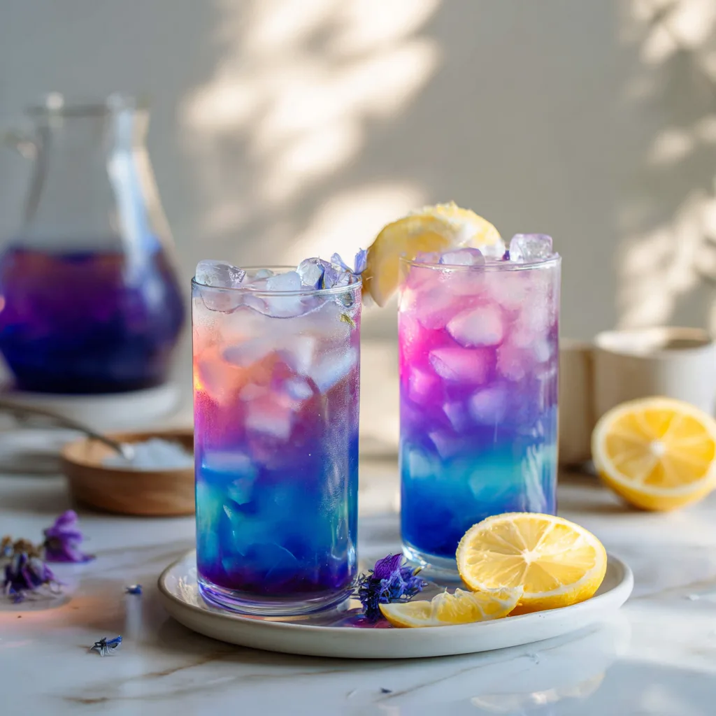 When served in clear glasses with ice, lemon slices, and edible flowers, the drink creates a layered “galaxy” effect that looks incredible on camera. That’s why this lemonade has become a favorite for food bloggers and party hosts alike.