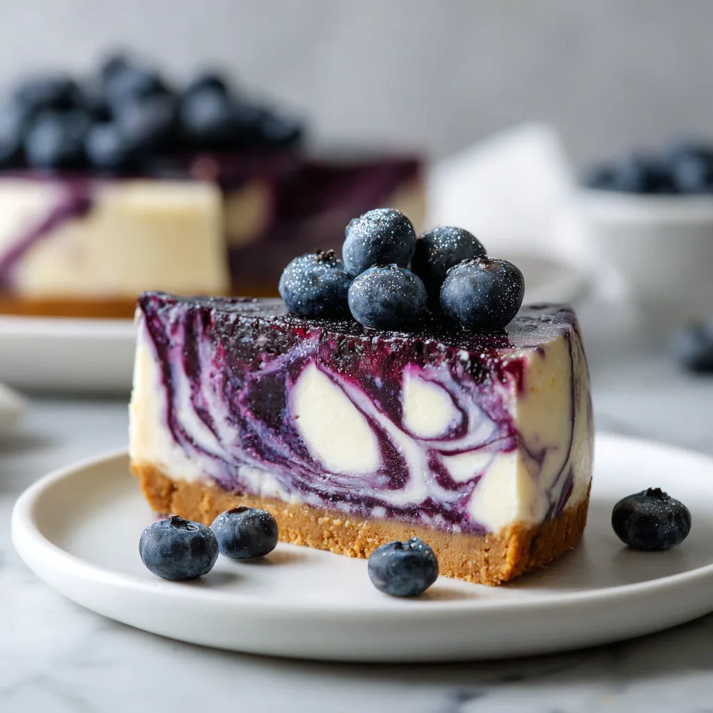 Unlike overly sweet cheesecakes, this blueberry swirl cheesecake recipe balances tangy cream cheese with sweet-tart blueberry flavor, creating a sophisticated and well-rounded bite.