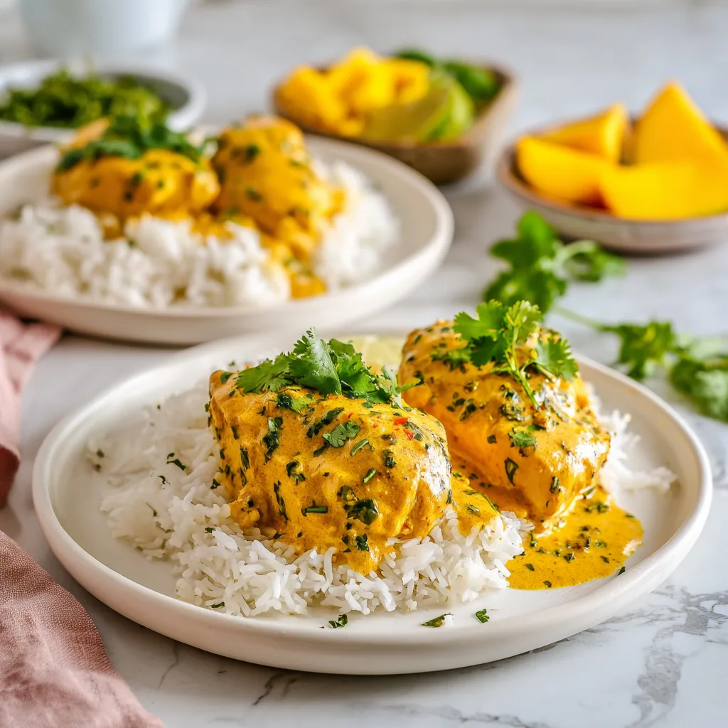 Unlike traditional curries that rely heavily on tomatoes or cream, mango curry adds a naturally sweet and silky texture thanks to the fruit itself. The result is a beautiful golden sauce that coats every piece of chicken while delivering layers of flavor in every bite.