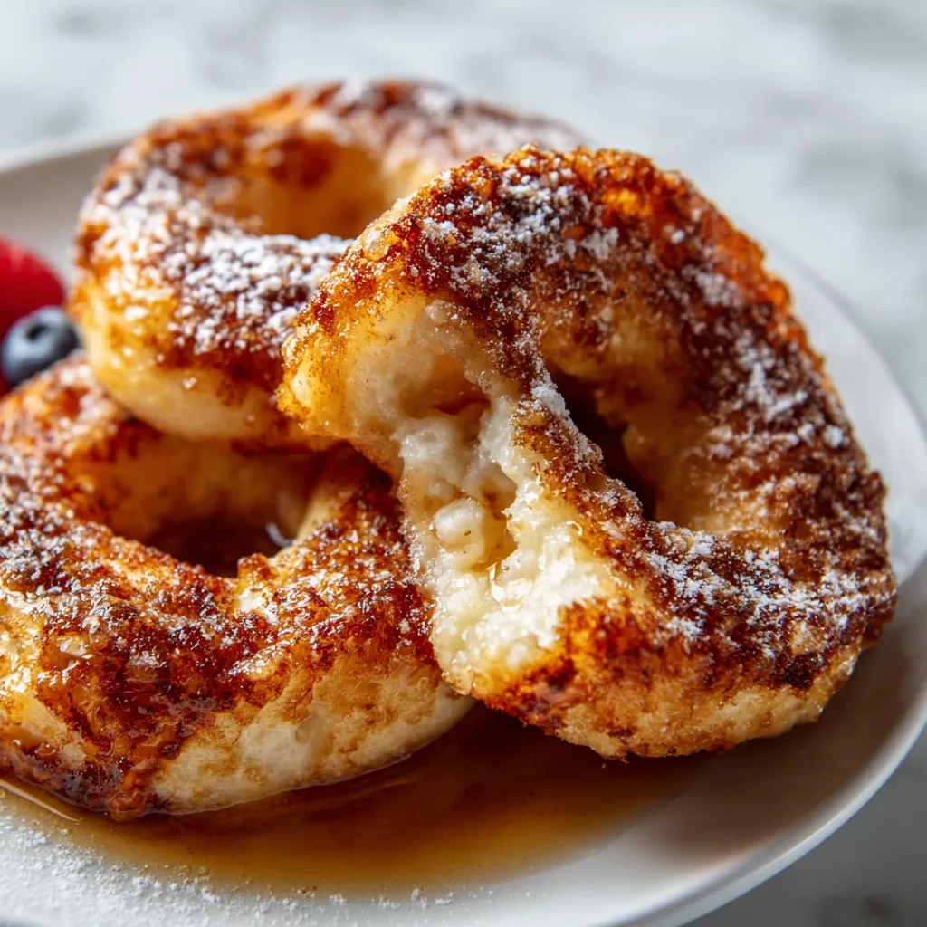 1. Cinnamon Crunch Version: Sprinkle cinnamon sugar over the custard-dipped bagels before frying. The sugar caramelizes beautifully!