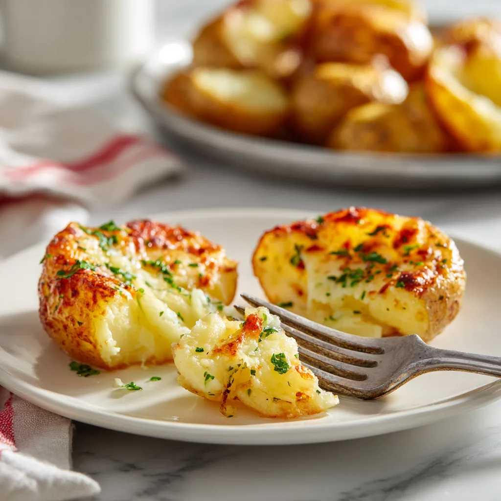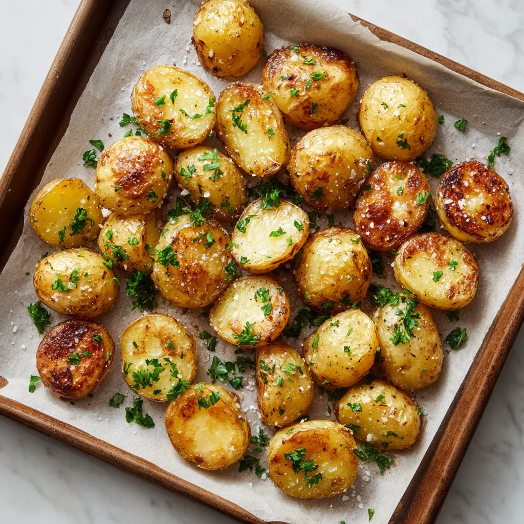 What makes these potatoes different from traditional roasted potatoes is the way fat and heat work together. The potatoes are halved and placed cut-side down, allowing direct contact with the baking surface. As they roast, the butter and olive oil seep into the flesh, breaking down starches and creating that signature melt-in-your-mouth texture.