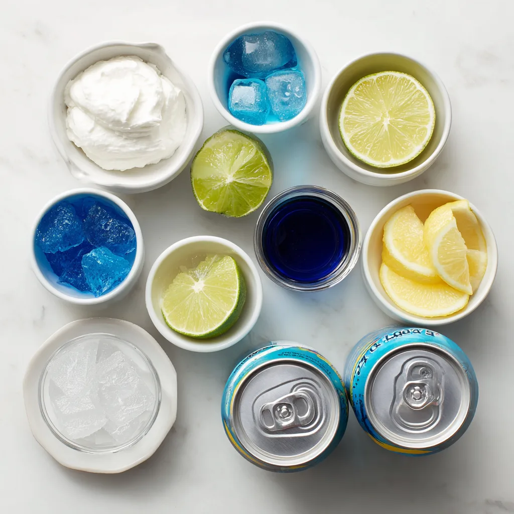 - 1–2 tbsp blue curaçao syrup (non-alcoholic version available)