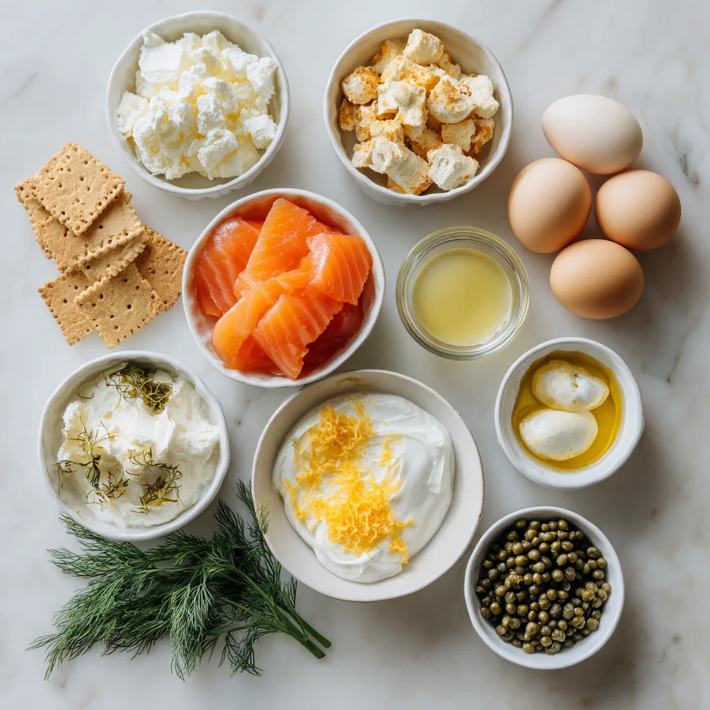 - Top each cheesecake with smoked salmon, capers, and dill before serving.