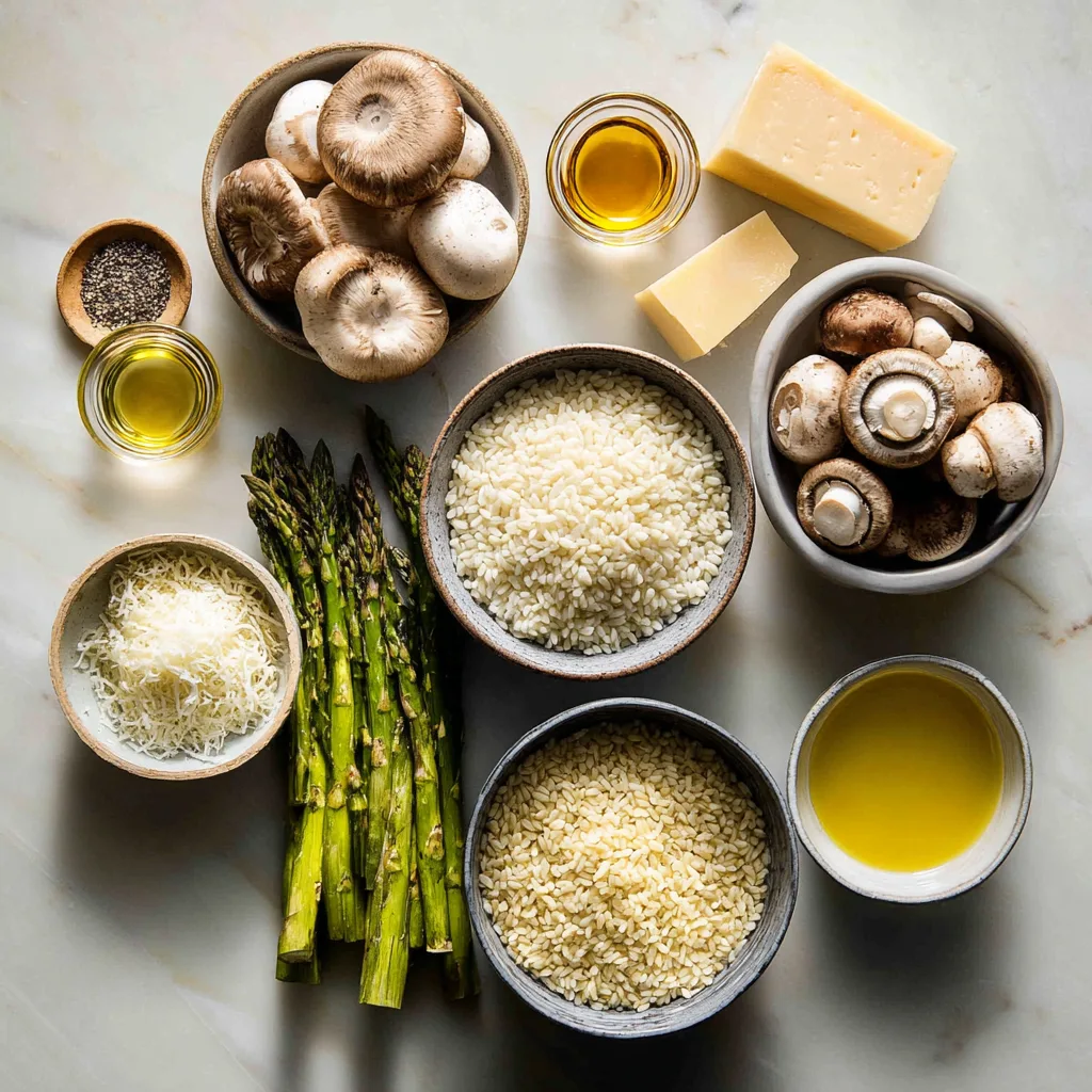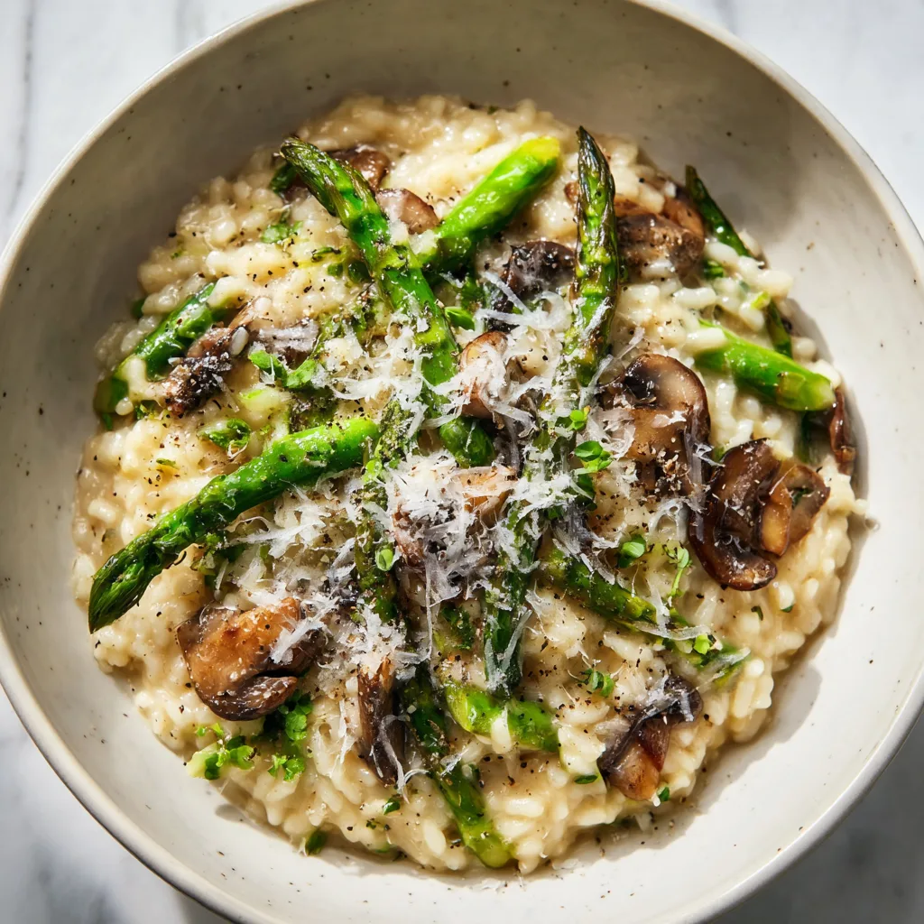 A creamy Italian risotto with earthy mushrooms, tender asparagus, and rich Parmesan cheese. Elegant, comforting, and perfect for any dinner.