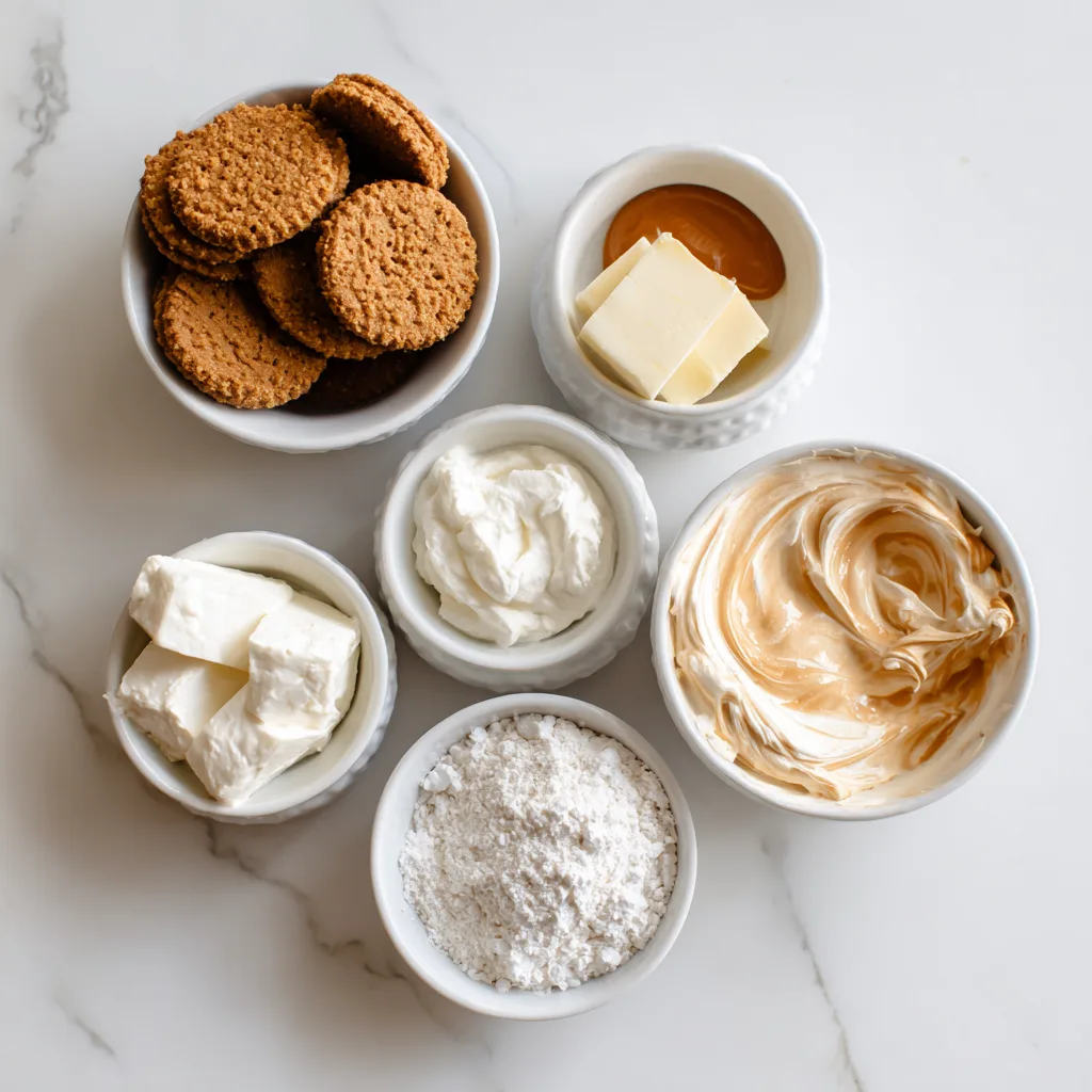 Crush the Biscoff cookies into fine crumbs using a food processor or by placing them in a sealed bag and crushing with a rolling pin. Mix the crumbs with melted butter until the texture resembles wet sand. - Make the Cream Filling