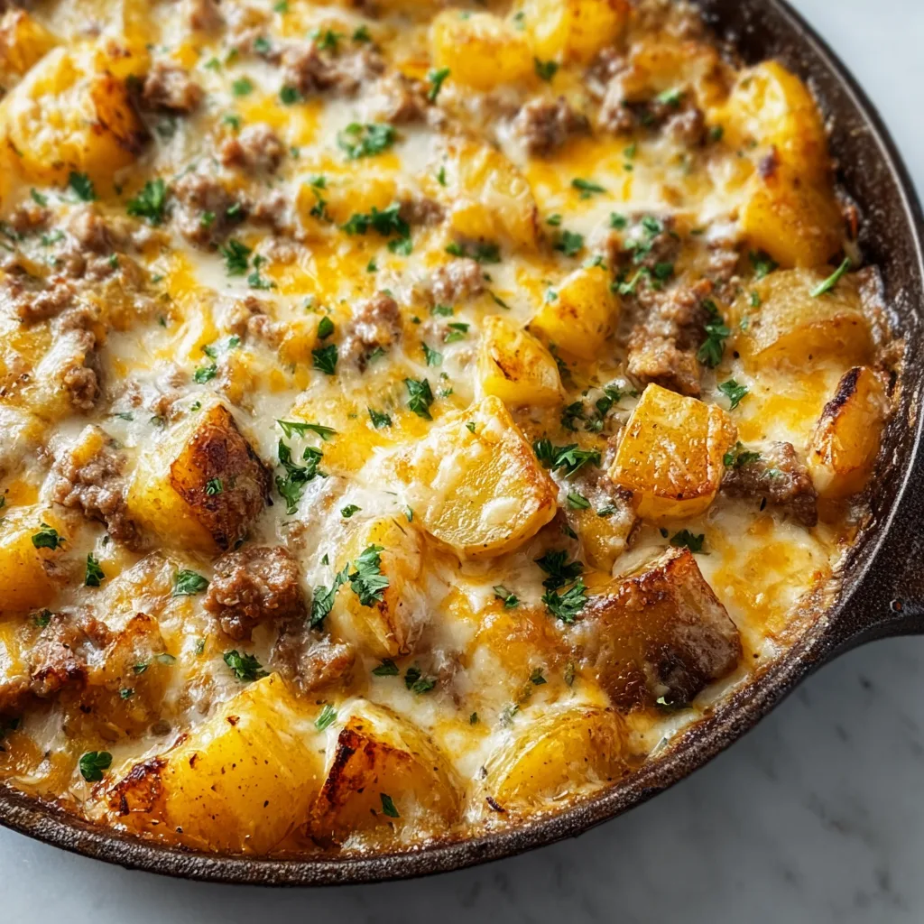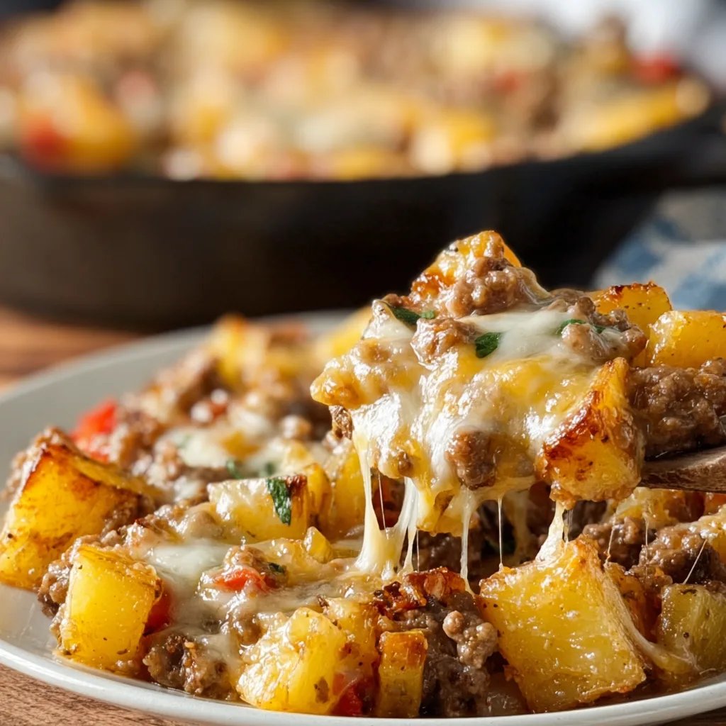 Let’s dive into this indulgent, flavor-packed skillet dinner that combines the heartiness of meat and potatoes with the gooey magic of cheese.