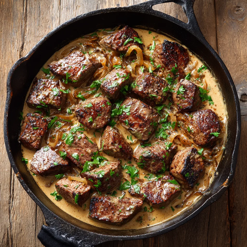 Juicy steak bites simmered in a smoky honey BBQ cream sauce for a rich, one-pan meal that’s ready in under 30 minutes.