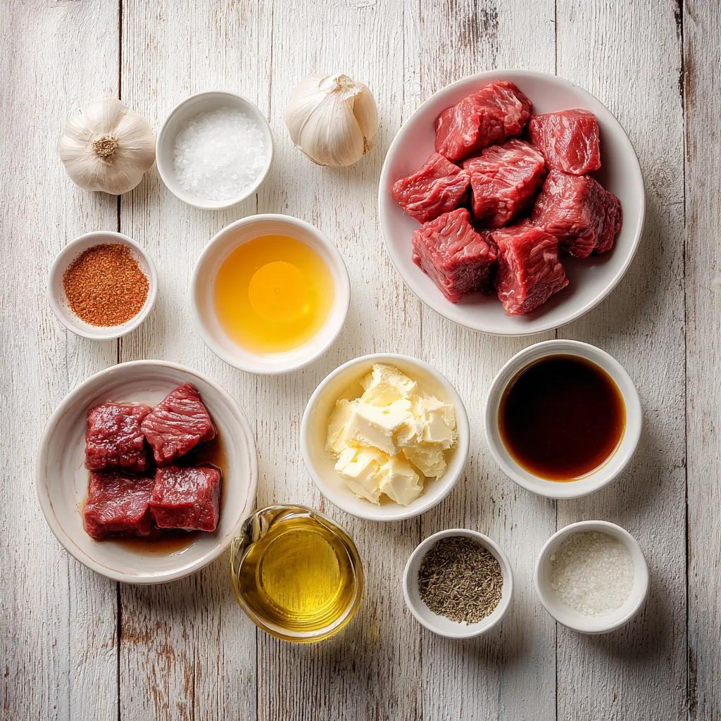 Heat olive oil and 1 tbsp butter in a large cast iron or stainless-steel skillet over medium-high heat. Once the pan is hot, add the steak cubes in a single layer (avoid overcrowding). Sear for 2–3 minutes per side until golden brown. Remove steak from the skillet and set aside.