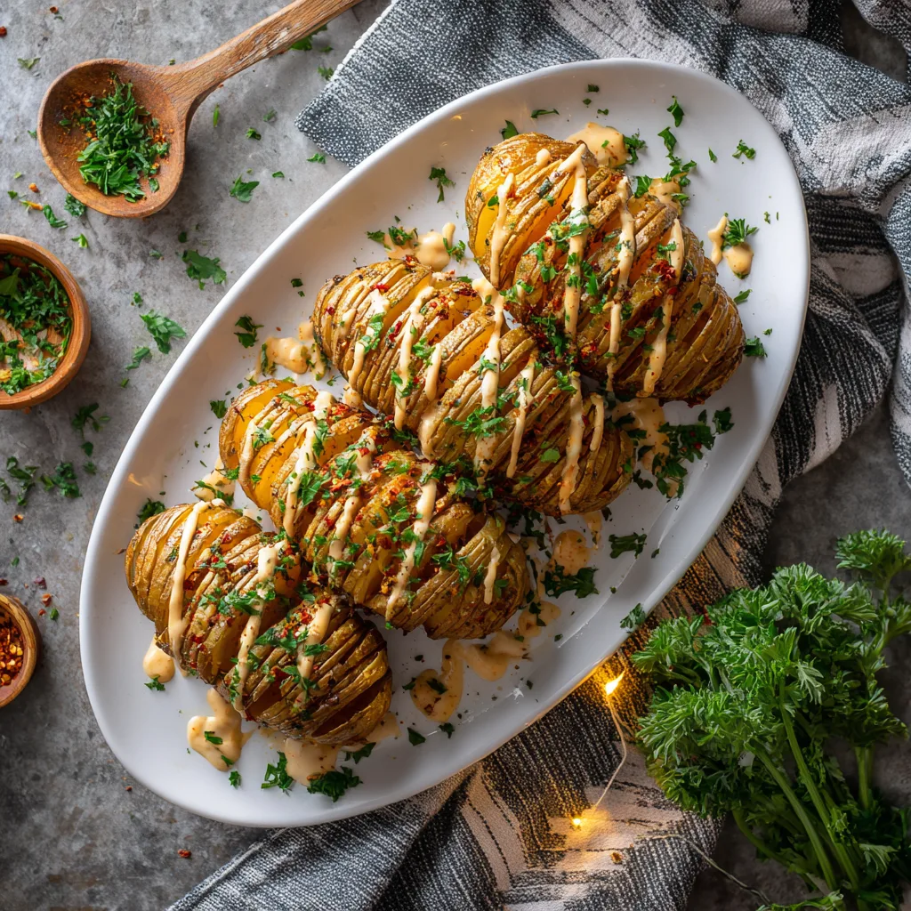 Oven-Baked Mini Hasselback Potatoes with Vegan Cajun Mayo