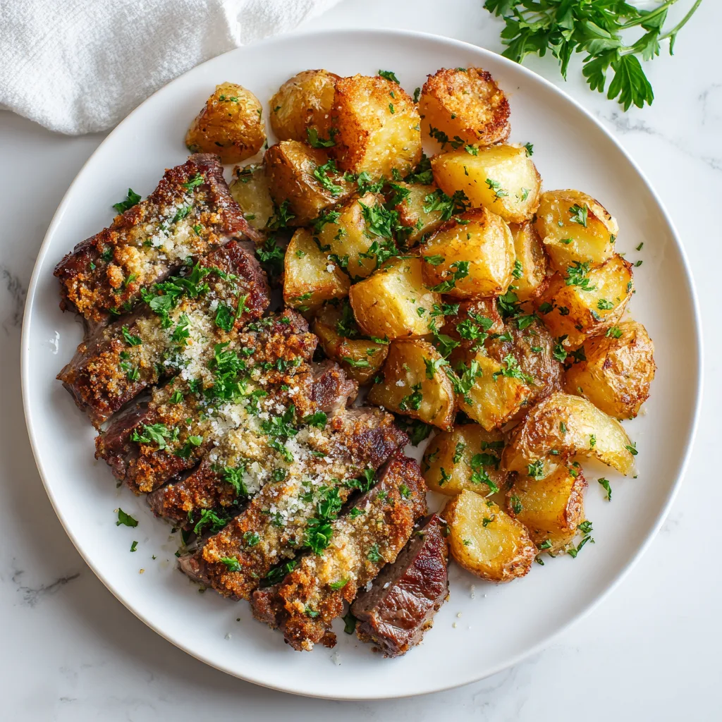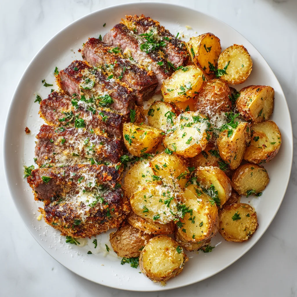 Parmesan Crusted Steak and Potato Sheet Pan Dinner