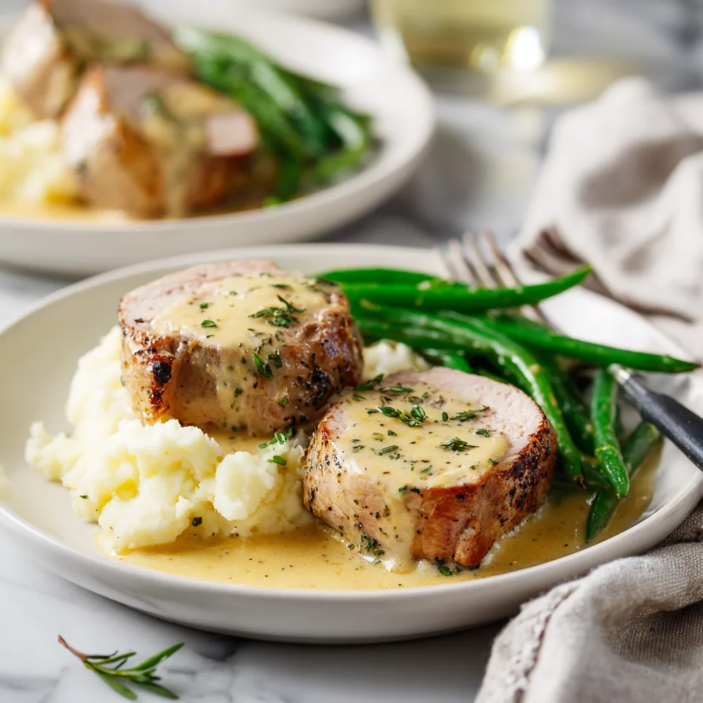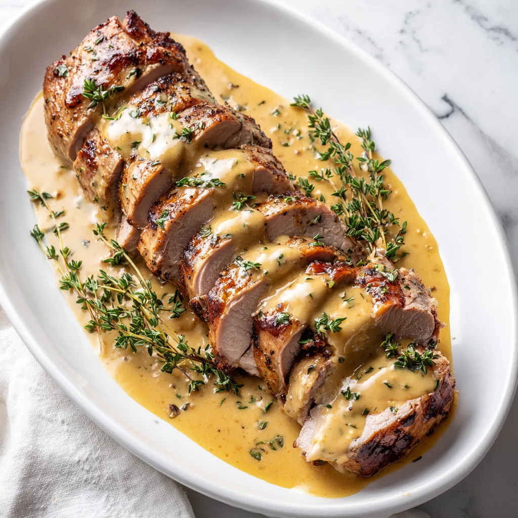 Juicy pork tenderloin served with a rich and tangy Dijon mustard cream sauce for an elegant yet easy meal.