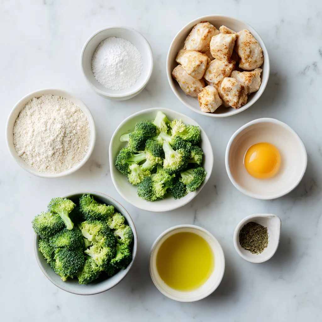 - In a large bowl, combine chicken, broccoli, egg, breadcrumbs, and seasonings. Mix until a soft mixture forms.