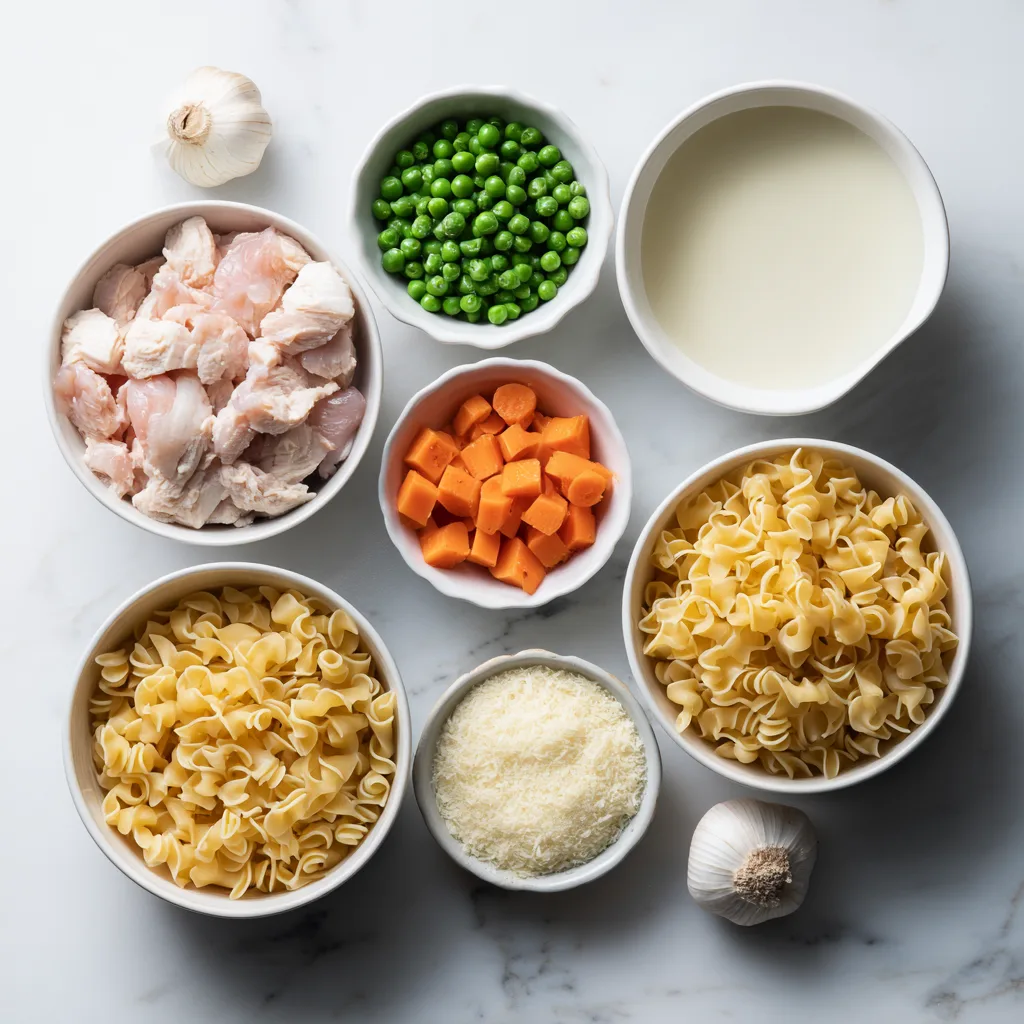 Ingredients for Quick Chicken Pot Pie Pasta