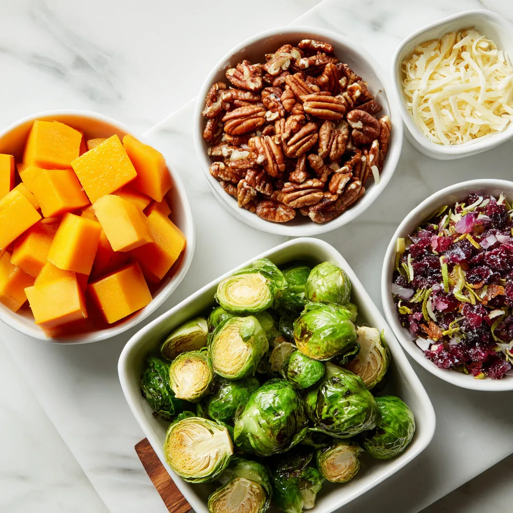Whether you’re looking for a hearty vegetarian main, a nutrient-dense side dish, or a festive salad to impress your guests, this recipe delivers. The ingredients are simple and wholesome, yet the combined flavors taste like something from a high-end farm-to-table restaurant. Roasting brings out the natural sweetness of both Brussels sprouts and butternut squash. Toasted pecans provide irresistible crunch and richness, while a tangy homemade vinaigrette brightens everything up.
