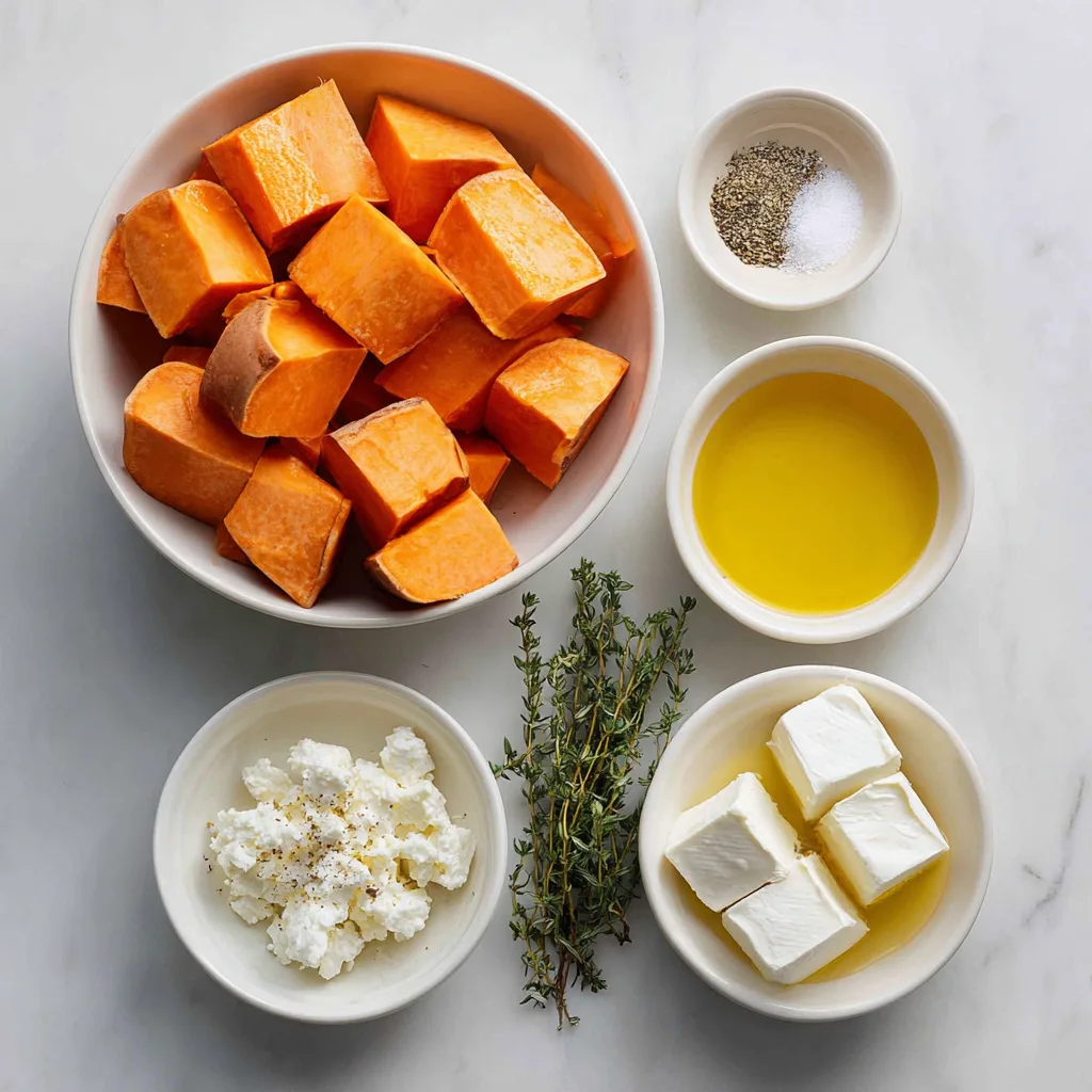 Caramelized sweet potato slices topped with crumbled feta, warm honey, and thyme — an easy, elegant side dish or appetizer perfect for holidays or weeknight meals.