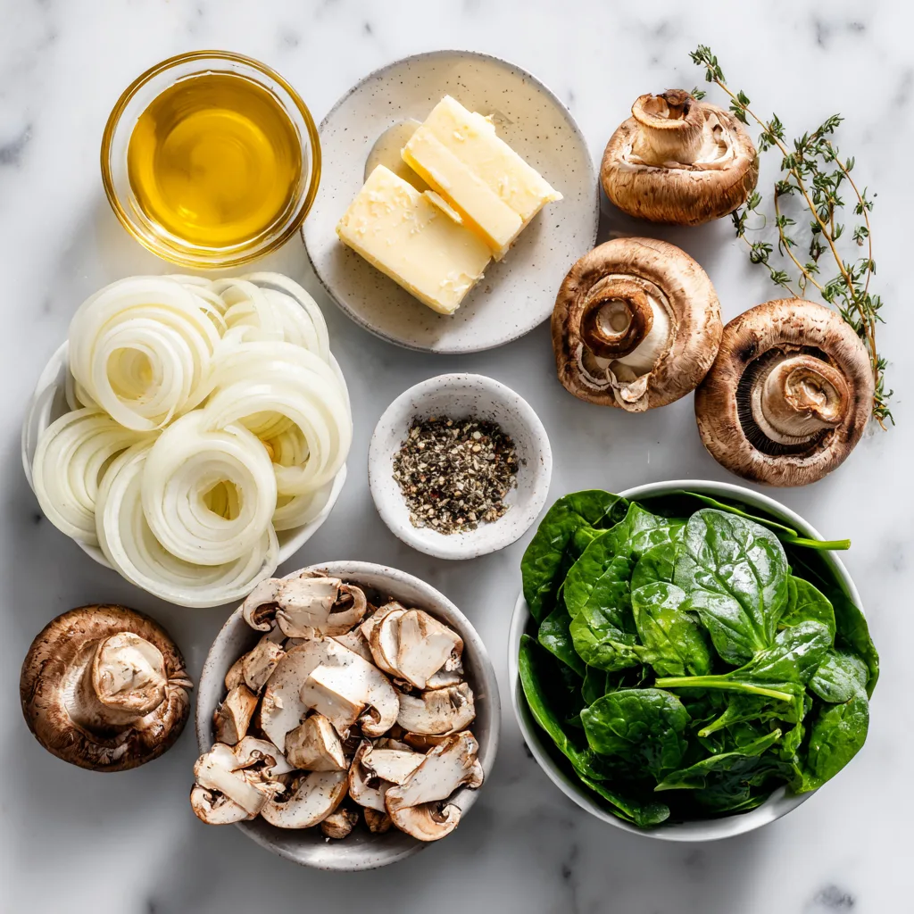 This dish features tender wilted spinach, deeply golden caramelized onions, and savory sautéed mushrooms — a combination that feels earthy, hearty, and naturally satisfying. These three ingredients work together to create layers of flavor: sweetness from the onions, richness from the mushrooms, and freshness from the greens.