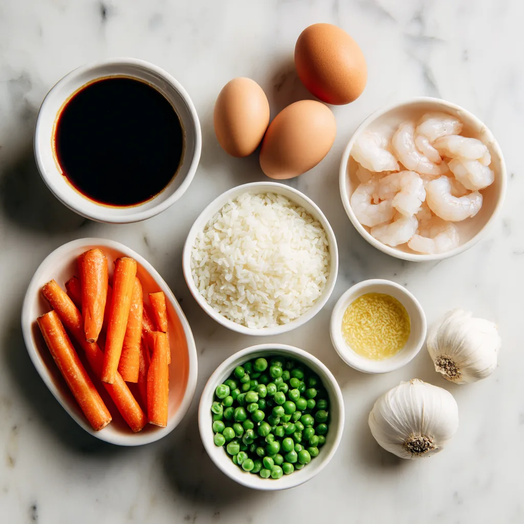 Fried rice cooks fast, so have all your ingredients measured and ready. Pat the shrimp dry with paper towels — this helps them sear instead of steam.