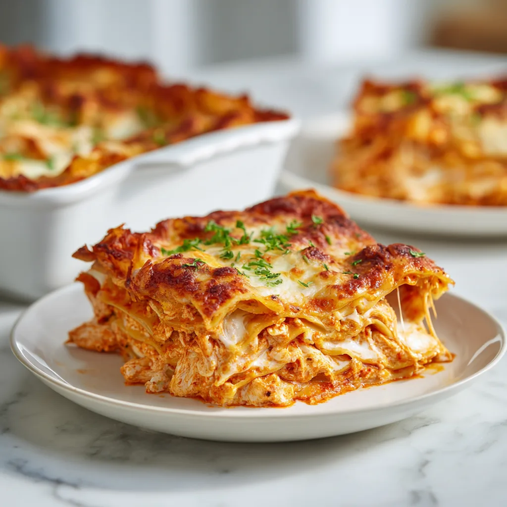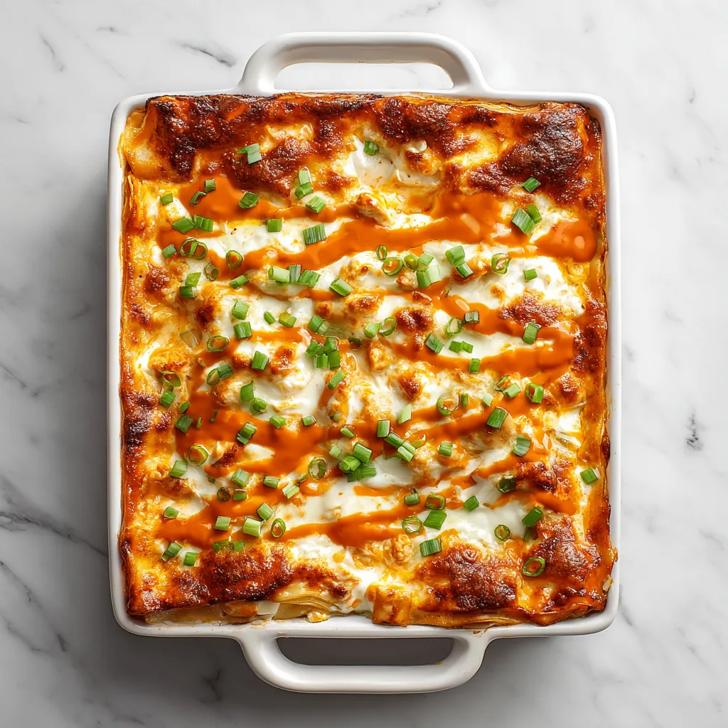 A bold, creamy lasagna layered with buffalo-sauced chicken and melted cheese.