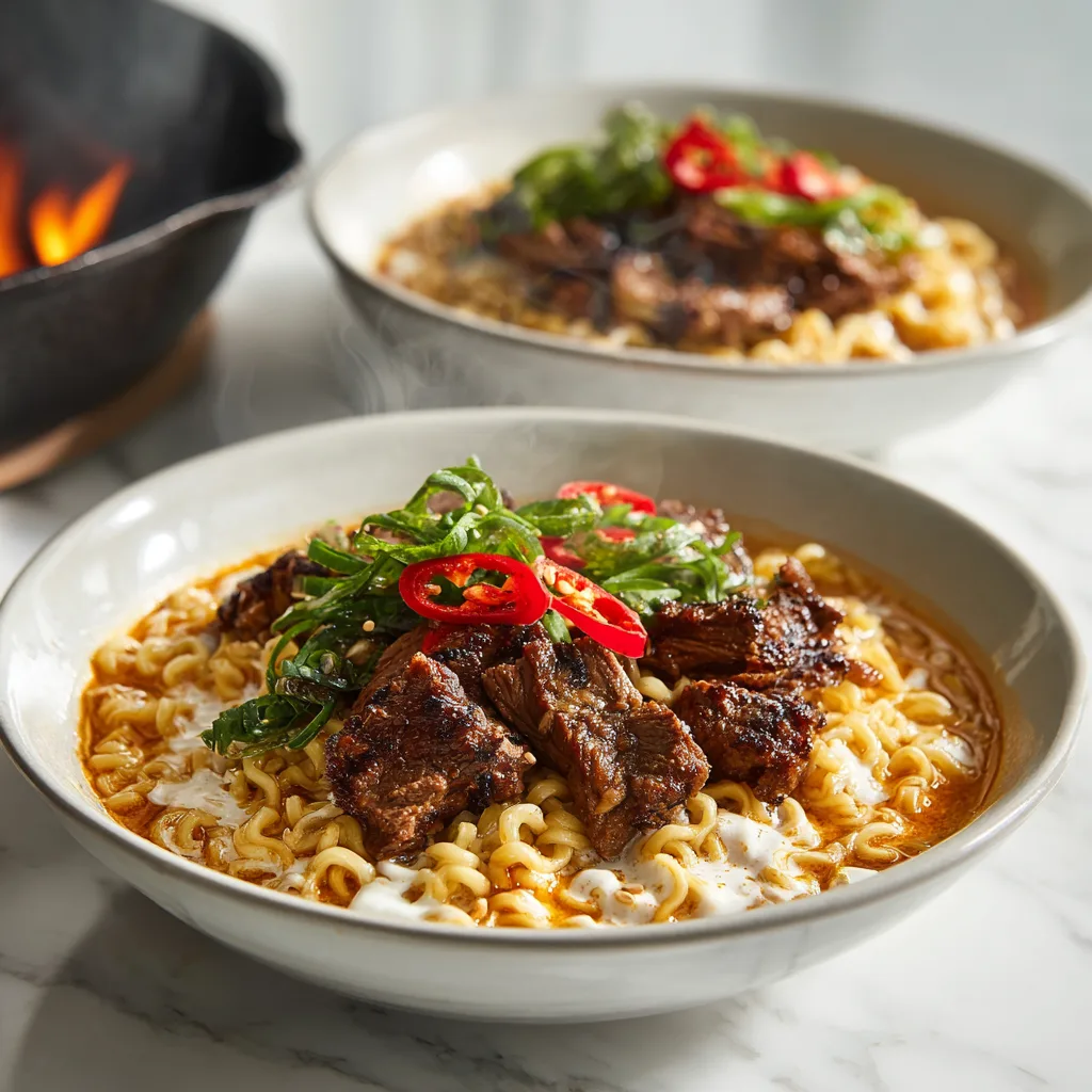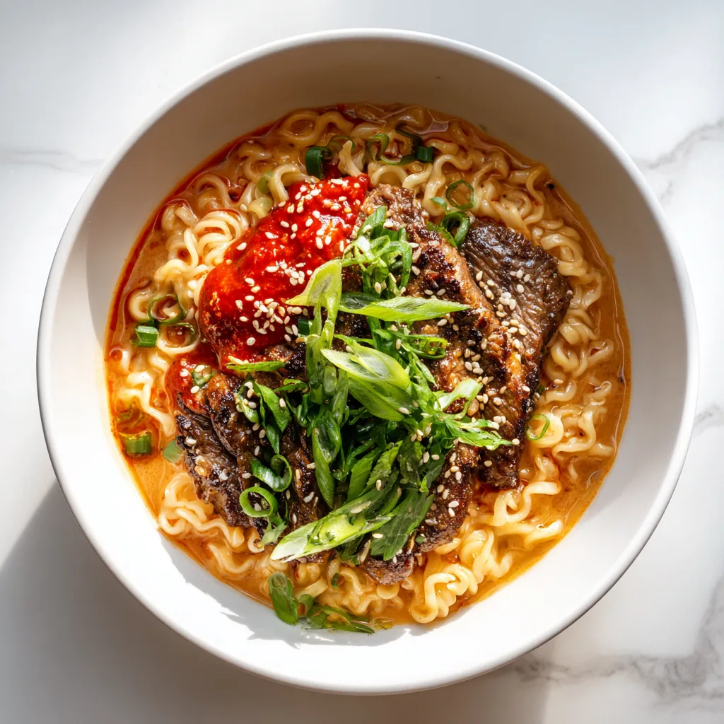 Spicy Korean Ramen with Grilled Beef & Creamy Sauce