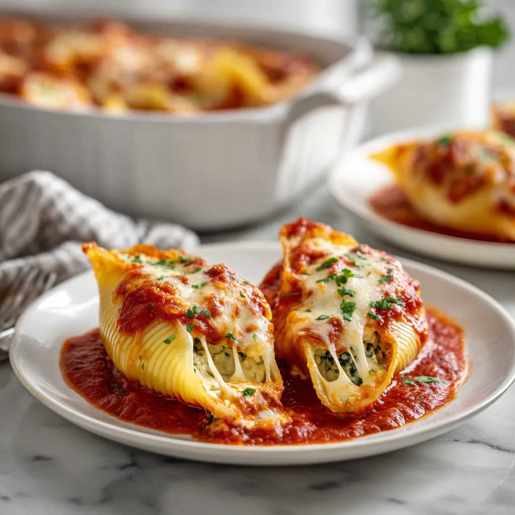 Beyond flavor, this dish is deeply rooted in Italian-American home cooking culture. Stuffed pasta recipes became popular as a way to stretch ingredients, feed large families, and create celebratory meals from simple pantry staples. Today, spinach and ricotta stuffed shells continue that tradition—comforting, economical, and endlessly adaptable.