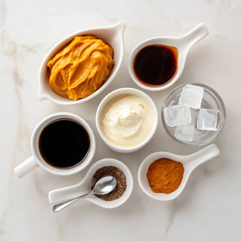 - Prepare Pumpkin Cream Foam – In a small bowl or frother, combine pumpkin puree, cream, and a pinch of pumpkin spice. Whip until smooth and slightly frothy.