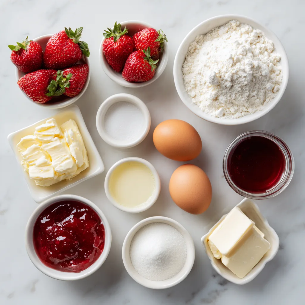 - Gently swirl the strawberry jam into the dough, being careful not to fully mix — you want visible strawberry ribbons.