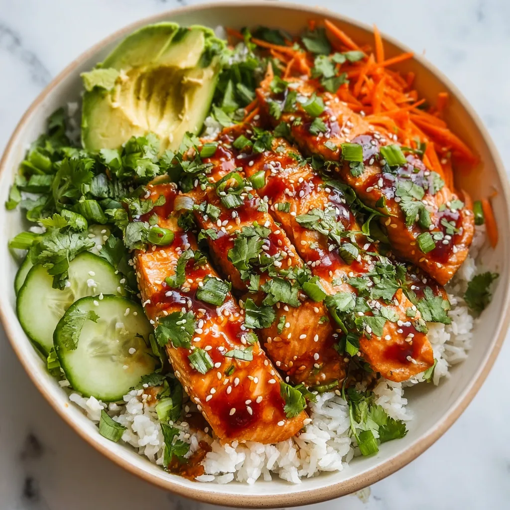 This Sweet Chili Salmon Bowl Recipe captures everything we love about comfort food with an Asian-inspired twist — sweet, spicy, colorful, and easy to make. Every bite bursts with flavor and freshness.