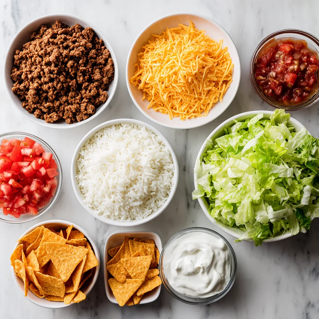 Ingredients for the Perfect Taco Rice Bowl with Doritos