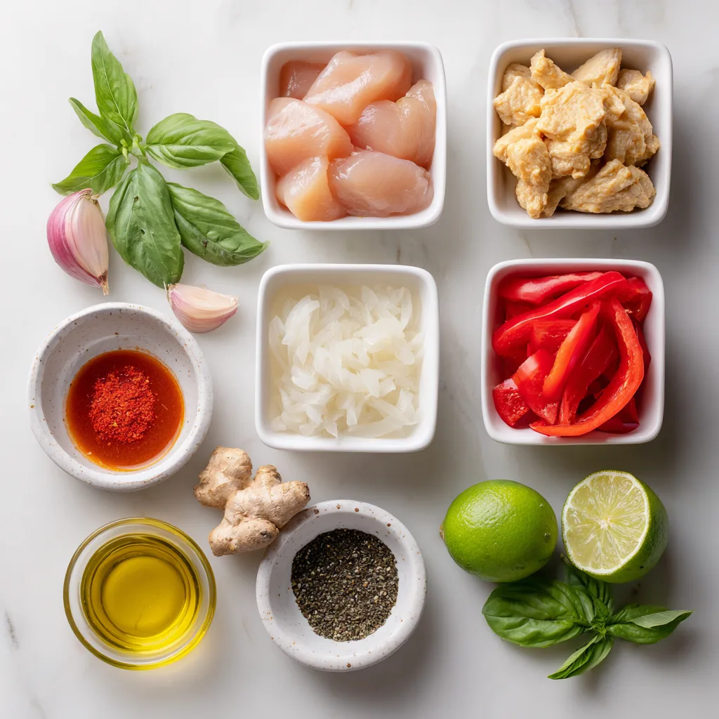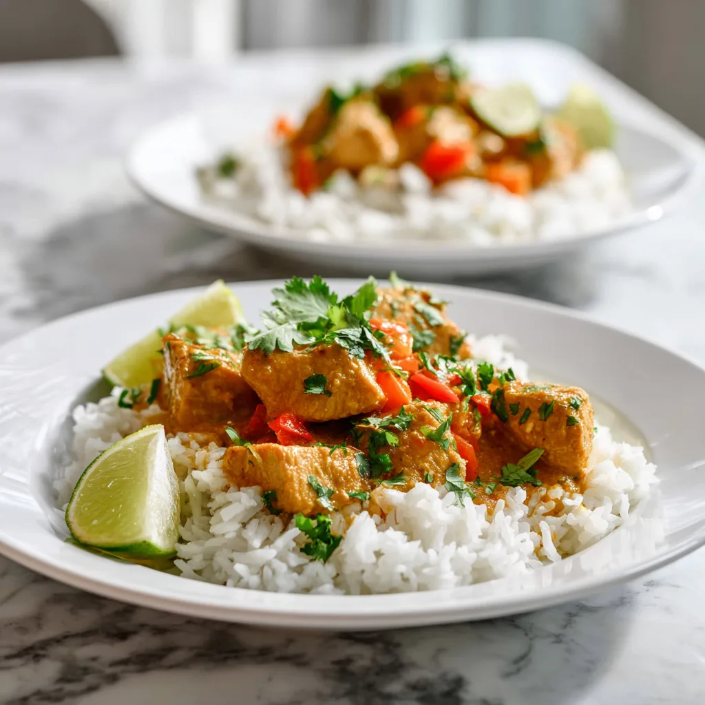 A creamy and flavorful Thai-style chicken curry made with coconut milk, red curry paste, and aromatic spices.