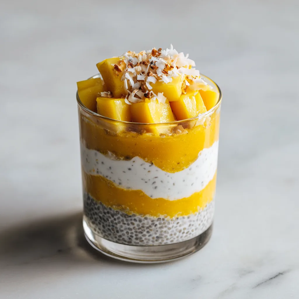 Add a thin layer of toasted granola between chia and mango for texture contrast.