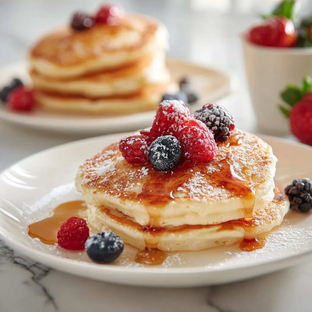This recipe is carefully balanced to ensure optimal fluffiness and flavor. The combination of buttermilk, baking soda, and baking powder creates a perfect rise, while the melted butter adds richness without heaviness. The resting step and gentle mixing technique guarantee soft, airy pancakes every time.